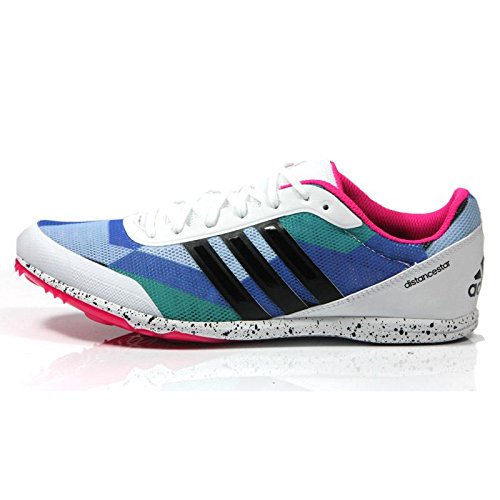 Set the pace to fast in these lightweight distance spikes built for competition. With a mesh and synthetic upper, this shoe is durable and breathable for max performance. Lightweight and flexible these spikes are designed for ultimate performance. The TPU outsole plate with the adiwear rubber in the heel provides exceptional traction ad durability whilst the EVA midsole provides the spikes with the lightness of a feather, banishing all restrictions that might keep you from reaching the finish line first. Mesh upper along the forefoot provides outstanding breathable capabilities that keep the foot cool, dry and sweat free. The adidas distancestar ladies running spikes are suitable for distances between 800-10,000m indoor and outdoor.