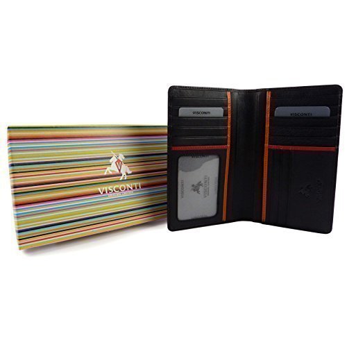 Best Seller! MENS LEATHER Slim Suit WALLET by VISCONTI; Bond Collection Gift Box Stylish (Black & Crimson) Review